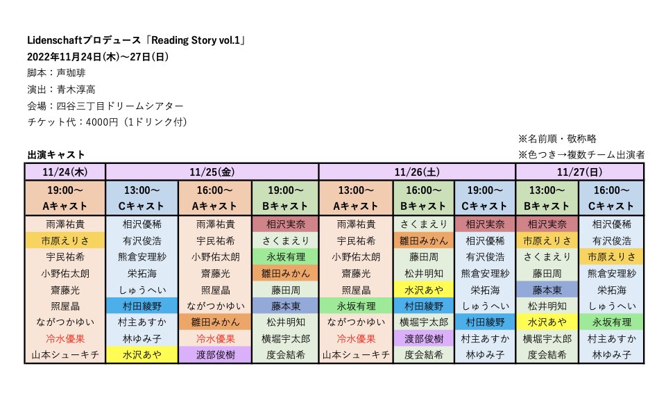 (公演延期になった朗読劇の再調整日程です。)